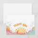 Denna fantasifulla vattenfärgskonst visar en glad sol omgiven av mjuka moln, gnistor och lekfulla klotter, vilket skapar en varm och upplyftande atmosfär. Med sin ljusa borstbokstavsstil och milda pastellfärger uttrycker designen tacksamhet på ett glatt, hjärtligt sätt som känns både vänligt och inspirerande.