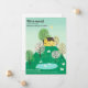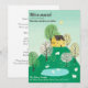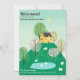 Söt och bedårande illustration av ett lantligt gult hus på toppen av en kulle med massor av grönt gräs, träd och en närliggande sjö med svanar, omgiven av betande får. Baksidan av kortet innehåller ditt anpassningsbara meddelande till din familj och vänner, i kolteckensnitt.