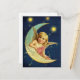 Denna klassiska viktorianska konst med en kerub som vilar på halvmånen har fått en charmig uppdatering med gnistrande stjärnor och en midnattsblå natthimmel. Den söta ängeln med rosiga kinder och en rosa klänning utgör en söt postkortshälsning för korta meddelanden och underrättelser. Den utgör en prisvärd och inofficiell inbjudan till babykalas, födelsetal (det är en flicka!), eller ett tackkort som är elegant, stilfull och tidlös.