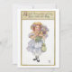 Söt liten flicka i bonnet med vår blommor och Påsk hälsning. Baksidan har kompletterande grafik och redigerbar fält.