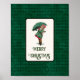 Festiv semesterplanschtryck med utklipp från antika julpostkort med en söt liten flicka iklädd sin finaste semesterklänning med matchande paraply. "God Jul" utsmyckad hälsningstext kan anpassas. Mörkgrön vintage-harlekinsmönstrad bakgrund