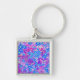 Söt Violet Blue och Lime Green Flowers Fyrkantig Silverfärgad Nyckelring