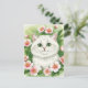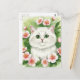Söt vit katt Blomsterkrans Vattenfärg Postkort för Postcrossing