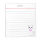 Söt vit katt och rosa rubrik på vit linjerad anteckningsbok. Texten kan anpassas. Bra för alla!