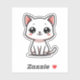 Söt vit kattunge i kawaii chibi-stil med stora runda ögon och pastellfärgade detaljer, perfekt för dekaler och scrapbooking.