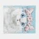 Denna design presenterar en nätt vitkattunge som ha på sig en rosa, och blått blommar gloria.
