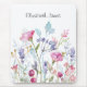 Elegant Modern färgstark och visuell blommigt har blommande lila, blå och rosa blommor och bär med gröna accenter i vit bakgrund. Lägg till anpassad namn eller text. Den här vattenfärgsblomman med musmatta blir en feminininisk perfekt för ditt kontor.