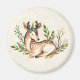 En magnet med en söt hjort nedtill omgiven av lövhaltig flora. Rustic Boho stil-design.