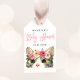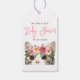 Märkre för babyduschgåva med katttema som innehåller ett rosa skript och en målad vattenfärgskatt med rosa och blommor nära grund i designen. Anpassa de katttemade märkrna för babyduschgåvor med mor till namn och datum för babyduschen. Märkrns baksida har en rosa och vit prickad design.