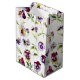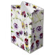 blommönstret söt har vattenfärgsrutor för gult och lila och löv på vit bakgrund.