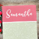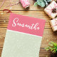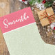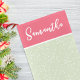 Denna design har en jul firande söt whimsical rosa, ett stilrent trendigt kalligrafi skript, en enkel minimalistisk festlig glad, med ett vitt snöfall mönster, med en chic preppy rosa och grön, en kreativ unik flickaktig chic, en jul hem inredning design, en jul juldekoration, en klassisk traditionell juldekoration, en rosa och grön julstrumpa