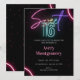 Söta 16-års glödande neon-födelsedagsinbjudan inbjudningar