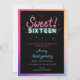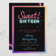Söta 16:e glödande neon födelsedagsinbjudan inbjudningar