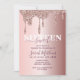 Elegant, gigantisk inbjudan med rosa glitter droppar mot en metallisk bakgrund i ro guld. Elegantens typografi för dina unika detaljer. Enkel att anpassa. Lägg till ditt foto på baksidan, inklusive överlägg för ro guld