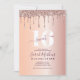 Elegant, gigantisk inbjudan med rosa glitter droppar mot en metallisk bakgrund i ro guld. Elegantens typografi för dina unika detaljer. Enkel att anpassa. Lägg till ditt foto på baksidan, inklusive överlägg för ro guld