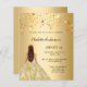 En faux guld tittar bakgrund. Dekorerad med gyllene stjärnor och en tjej med en tiara och en klänning. Anpassa och lägg till namn och detaljer. 1 lakan = 1 inbjudan tryckt kant till kant.