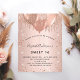 För en elegant 16, 16:e födelsedag. En ro-guld tittar metallisk bakgrund. Dekorerad med ro guld, rosa faux glitter, färgdroppstift och ballonger. Anpassa och lägg till information om namn, ålder och party. Namn är skrivet med ett handskript i stil