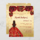 En modern, snyggt och glamorös inbjudan till en svensk 16, 16:e födelsedagsfest. En faux guld-bakgrund med faux guld glitter, en flicka med röd klänning och guld och röd ros, blommigt. Namn är skrivet med ett modernt handskript i stil. Anpassa och lägg till information om party. 1 lakan = 1 inbjudan tryckt kant till kant.