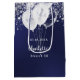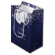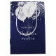 En presentpåse för en girig och glamorös sötad 16:e födelsedag. En marin blå bakgrund som dekoreras med glitter-gnistor och ballonger. Den blå färg är ojämn. Anpassa och lägg till datum, namn och ålder. Texten: namn är skriven i vitt med ett modernt handskript i stil
