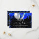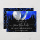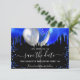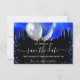 En svart bakgrund som dekoreras med royalets blå droppar, konfekt och ballonger. Anpassa och lägg till datum och namn/ålder. Texten: Spara datumet skrivs med ett stort trendig-handskript i stil.