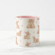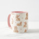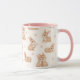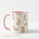 Söta akvarellkaniner & blommor Mönster Mugg. Ett mönster av akvarellkaniner och ömtåliga rosa blommor. Perfekt för kaffe, te eller någon annan favoritdryck, denna mugg tillför en touch av sötma till din dagliga rutin. Det kontrasterande rosa handtaget och interiören förstärker dess lekfulla tilltal. En idealisk present för påsk, baby shower, födelsedagar eller någon kaninälskare!