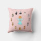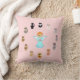 Söta änglar och kattserieteckningar på ljusrösa bakgrund Kastkudde.