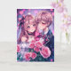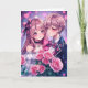 Söt animepar omgiven av rosa rosor och hjärtan. Söt personlig Alla Hjärtans-dags kort för paret som älskar anime!