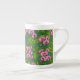 Söta ärter och humlor, grönt och rosa benporslin mugg