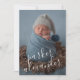 Elegant söta födelseannonser med ditt favorit nyfödda foto i full bleed, med barnets namn i snedställd vit skrift, och på baksidan finns födelseinformationen och dina namn i vitt (eller valfri färg och teckensnitt du vill). Ändra bakgrundsfärgen till valfri färg som passar ditt foto. Du kan också lägga till fler foton på baksidan!