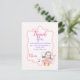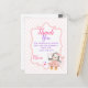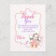 Det här tack-kortet är ett perfekt sätt att tacka sina festsällskap. Det kan användas till barnkalas eller baby shower. Funktionen är en blekrosa dekorativ ram med en tecknad pingvibebis utklädd till ballerina i en rosa tutu som snurrar runt ett rosa band. Bakgrunden har ett blekrosa-randigt mönster. Kan anpassas genom att ändra texten och sedan göras personlig med ett namn. Matchande partyartiklar finns tillgängliga från suziigifts.