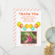 Söta ballonger barn fotobild födelsedag tackkort. Tack ballong födelsedagskort för barnens födelsedagsfest. Denna design kommer med färgglada ballonger. Personalisera kortet med ditt barns namn, tackmeddelande och foto.