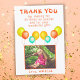 Söta ballonger barn fotobursdag Tacksamhetskort. Tack ballong födelsedagskort för barnens födelsedagsfest. Denna design kommer med färgglada ballonger. Anpassa kortet med ditt barns namn, tackmeddelande och foto.