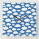 Söta Barn Fluffiga Moln i Blå Vit Himmel Fyrkantig Klocka