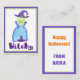 Dina barn kan önka alla en glad Halloween med dessa söta lila seriefigurs-häxvykort! Anpassa baksidan genom att lägga till namnet eller det anpassade meddelandet du väljer.