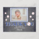 Modern och söt baseboll kritkort födelsedagsfoto tack-kort för barn. Ett tack-kort för barn - flicka och pojke, speciellt för 1:a och 2:a födelsedagen. Designen har ett barns foto (lägg till ditt eget), och små och stora basebollar. Bakgrunden är en trendig grå tavla. Anpassa kortet med ditt foto och namn. Du kan också ändra tack-texten och skriva din egen. Texten är i trendig och modern vit färg.