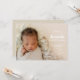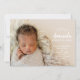 Elegant söta födelseannonser med ditt favorit nyfödda foto i full bleed, med barnets namn, födelse statistik och dina namn i vitt (eller valfri färg och typsnitt du vill.) Ändra färgen på baksidan till valfri färg som passar ditt foto under vita prickar (du kan ta bort prickarna.) Du kan också lägga till fler foton på baksidan!