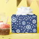 Den här söta blåduschpresenten för antingen en flicka eller en pojke har ett sött geometriskt mönster med ett havstema. En mörk blått bakgrund har olika stora cirklar i en roligt vatten bubbla som mönster. Den här inslagna pappra är perfekt för en babydusch eller ett barns födelsedag.