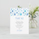 Trendiga blå mönstrade regndroppar faller mot ditt personliga tackmeddelande, dikt och namn på detta söta baby tack-kort. Baksidan har en extra dusch av regndroppar, vilket ger en extra touch till ditt speciella evenemang. Ett perfekt sätt att säga tack! Designad av Thisisnotme