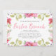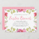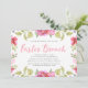 Elegant Påsk brunch-inbjudan innehåller en blommigt gräns med vattenfärg med tips om rosa, lila och grönt färg. brunch inbjudan har också ett snyggt-skriptteckensnitt, platshållare för anpassningsbar och en rosa- och vit polka-punkt mönster på baksidan.