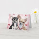 Små hundar, stora hjärtan! Denna förtjusande illustration visar ett par chihuahuas - en svart och tan, en fawn - mot en mjuk rosa bakgrund med flytande röda hjärtan. Med sina stora, uttrycksfulla ögon och söta leenden är denna design ett perfekt val för Chihuahua-älskare på Alla hjärtans dag eller för alla romantiska tillfällen.