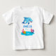 Söta delfin havsdjur namn baby t-shirt. Söta leende delfiner i tecknad stil. Anpassa namnet på t-shirten. Rolig och söt personlig delfin t-shirt för en flicka eller en pojke.