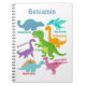En vacker färgrik dinosaurie anteckningsbok med söta tecknade dinosaurier och deras namn i ett roligt ljust teckensnitt. Dinosaurier - Tyrannosaurus Rex (T-Rex), Pteranodon, Brontosaurus, Ankylosaurus, Plesiosaurus, Velociraptor och en Stegosaurus. Denna anteckningsbok gör en perfekt personlig gåva för skolstart, födelsedag eller jul till en ung fan av förhistoriska dinos! Personliggör med ditt valda namn.