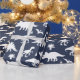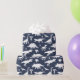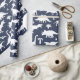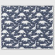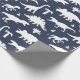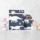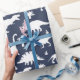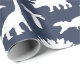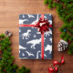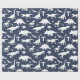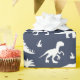 Dinosauriemönstrad presentpapper i marinblått och vitt med fantasifull design