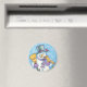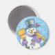 Söta djur bygger en snöman till jul magnet