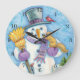Söta djur bygger en snöman till jul stor klocka