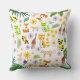 Söta djur safari förskola zoo djungel vit grön kastkudde för barn.