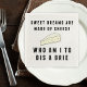 Söta drömmar är gjorda av ost. Vem ska jag göra? Ponder den här nyckel-frågan om livet på din nästa cocktail party eller vin och ost samlas. Vår skarpa cocktail-blöjor har citatet i svart typografi av återtro-stil med en illustration av mutost.
