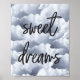 Söta Drömmar Väggkonstaffisch med moln bakgrund perfekt för barnkammare.