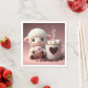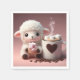 En charmig, fluffy vit lamm sitter bredvid ett ångande mugg av hett kakao täckt med marshmallow. Lammet håller sin egen miniatyrkone av rosa marshmallow, sitt stora ögon mousserande med glädje. Mugg har ett suddigt brunt hjärta, vilket ökar den mysiga och hjärtslitande atmosfären. Sprickade kaffebönor slutför scenen och antyder den utsökta aromen.