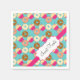 Den pappra napkin har en cupkaka och ger mönster på en tårblått bakgrund. Ett vitt, snabbt ram med en ljusstark rosa gräns nära napkins grund har anpassade text som lyder: Söta treter.